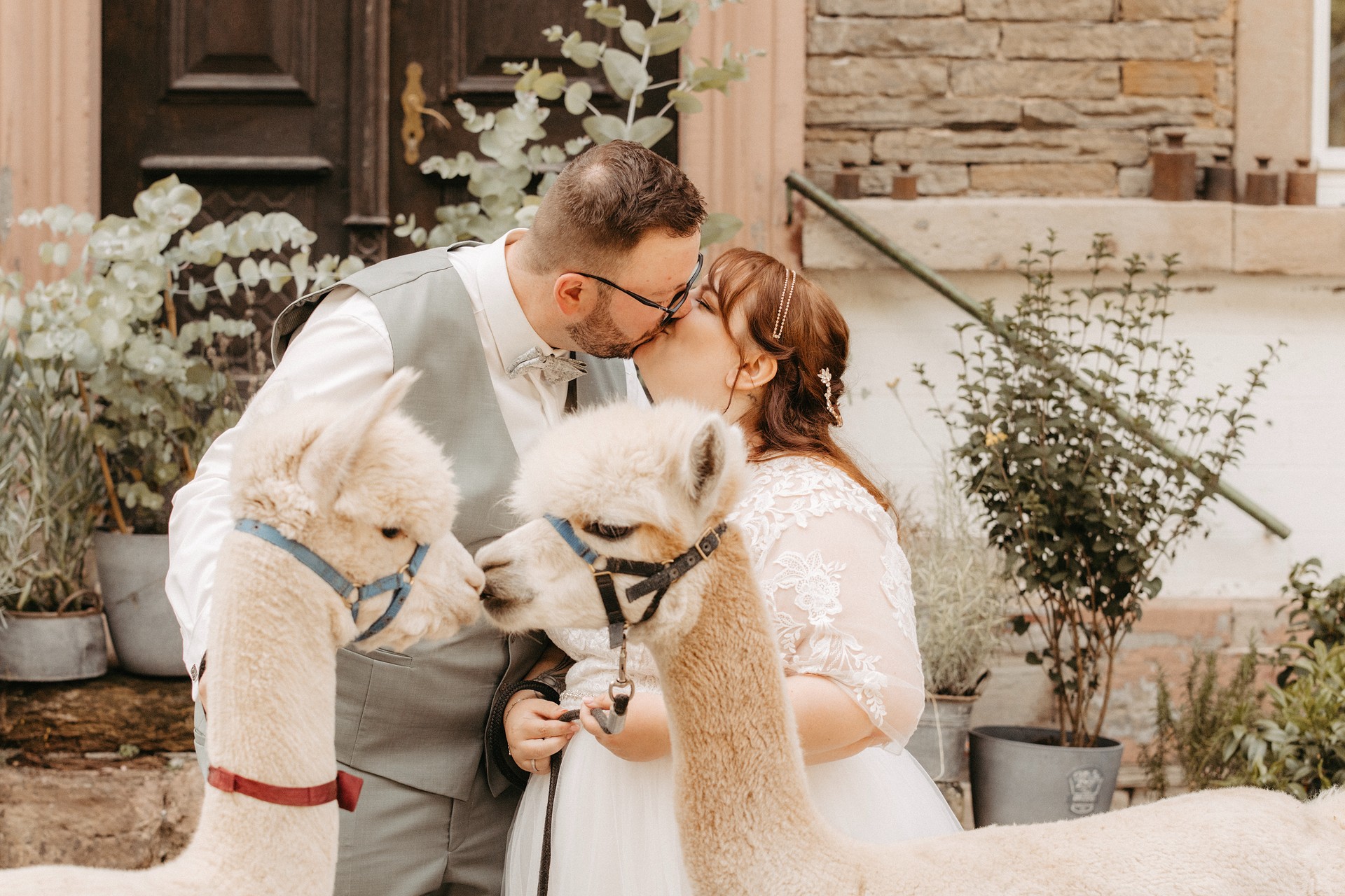 • Alpakas auf ihrer Hochzeit.