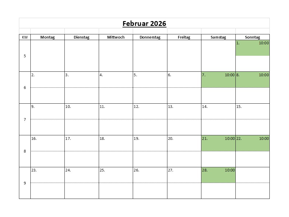 | weiße Termine | An diesem Datum ist keine Tour möglich. Entweder steht der Termin nicht zur Verfügung oder er ist bereits ausgebucht. |